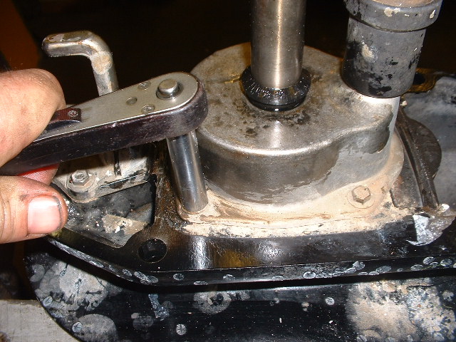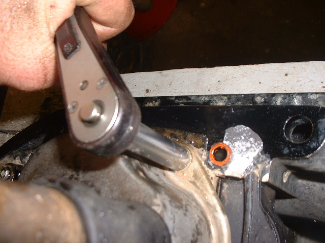 Lite suddig bild, men så här ser det ut innanför anoden. Lägg märke till den 6e och sista bulten. En 9/16” hylsa går åt här. Men på Gen I oftast en 5/16 insex.