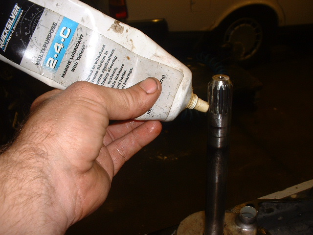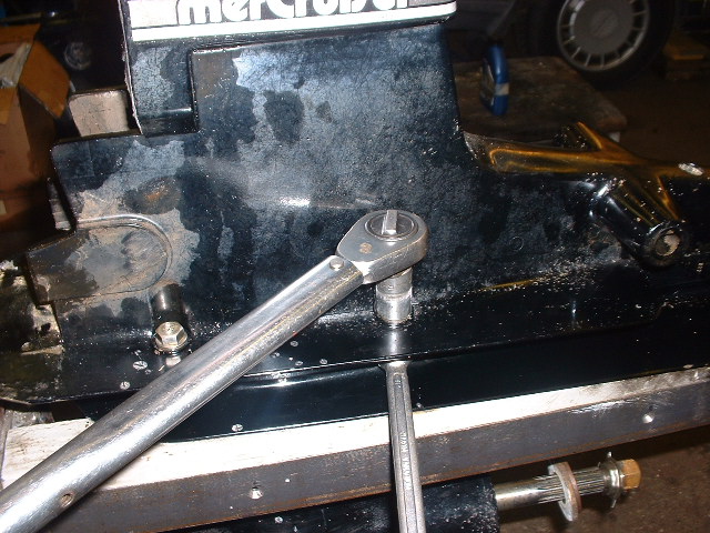 Oljefyllning. Räkna med c:a 1.3 liter (gäller även gen I) om du inte har oljeburk i motorrummet, vilket de flesta gen II har men inte gen I originalt. Då går det i c:a 1.7 liter. Fyllningen går till så här: Du behöver en pump som man pumpar in oljan genom understa dräneringshålet. Pumpa tills det rinner ut genom det övre. Montera då den pluggen. Har du inte behållare i motorummet så är det klart nu, annars fortsätter du pumpa tills nivån stiger i burken (för du har väl tömt den??) När nivån stiger där så kan du sätta i först övre pluggen och locket på oljebehållaren i motorrummet. Då skapas ett slags vaccumlås så att inte onödigt mycket olja rinner ut när du tar bort pumpen och monterar den undre pluggen. Fyll sen behållaren i motorummet full. Jo, full, för nivån kommer att sjunka när du börjar köra med båten. Det beror på att det blir en liten luftficka överst i drevet som fylls upp när du börjar köra. Detta gör att olja försvinner i burken, så att behöva fylla på några ggr i början av säsongen är normalt. Men sen ska det stabilisera sej, om inte har du läckage nånstans.